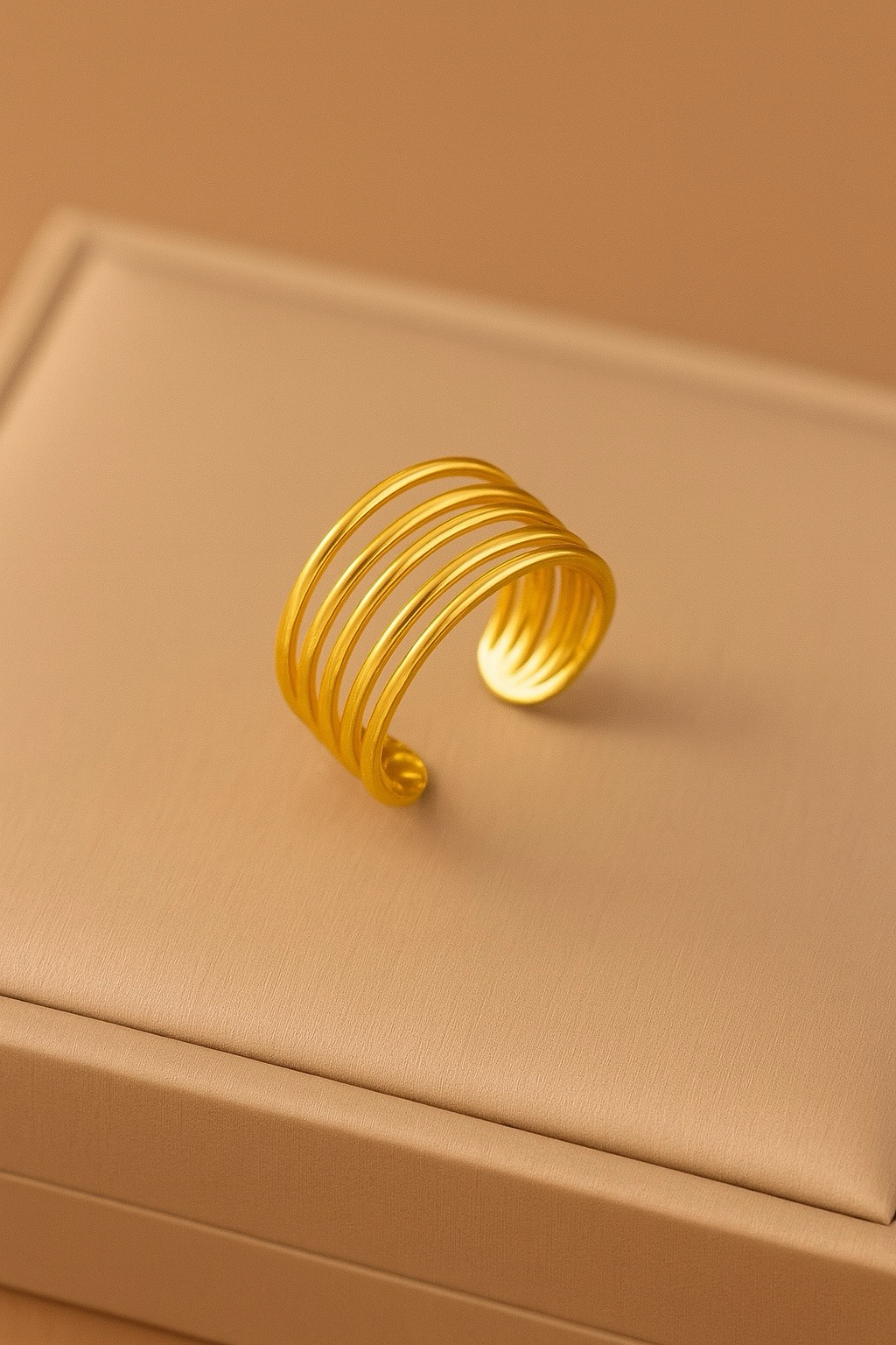 Beautiful Five Line Golden Adjustable Ring For Dailywear & Partywear