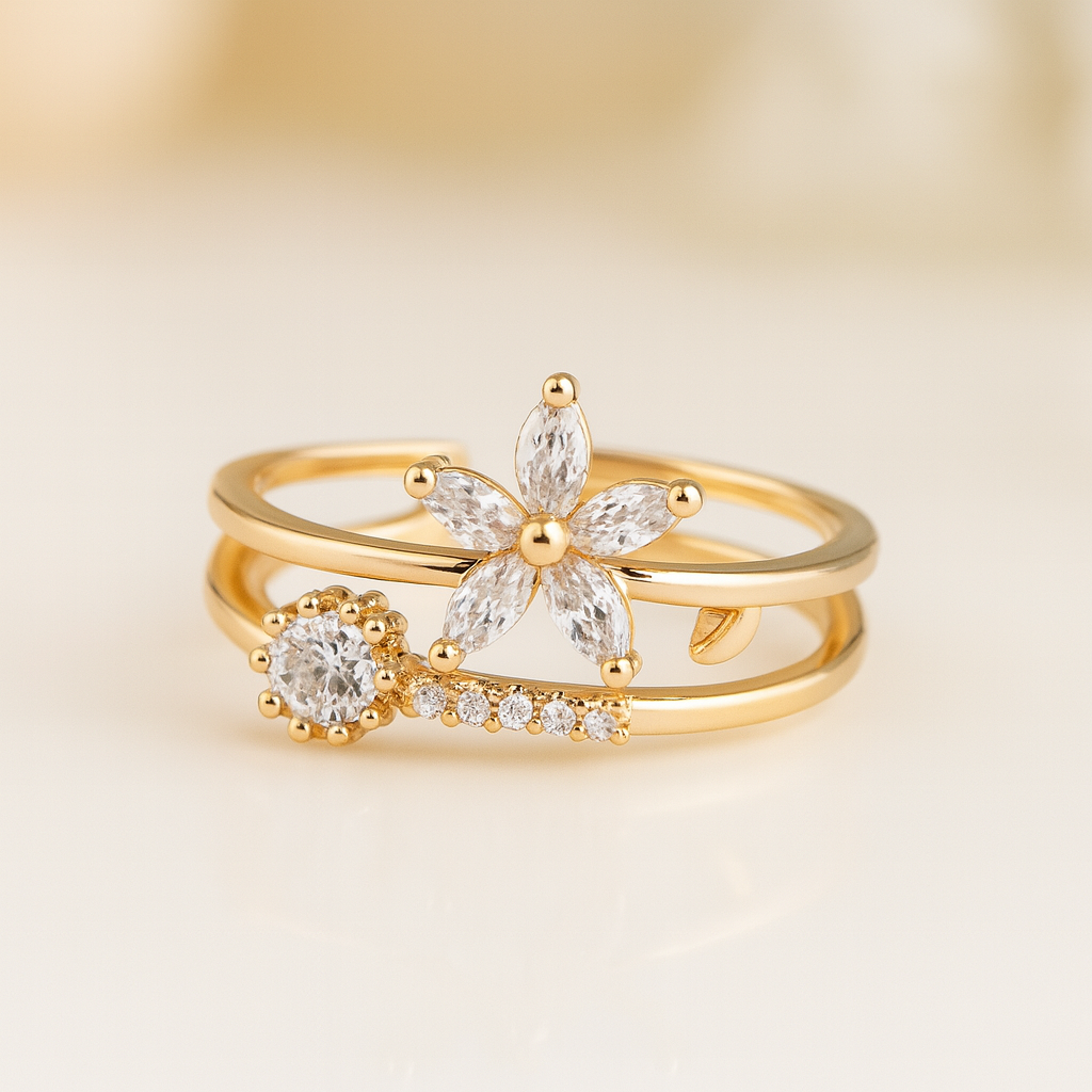 Double Layer Flower Design Gold Plated Adjustable Ring For Dailywear & Partywear_ATR023