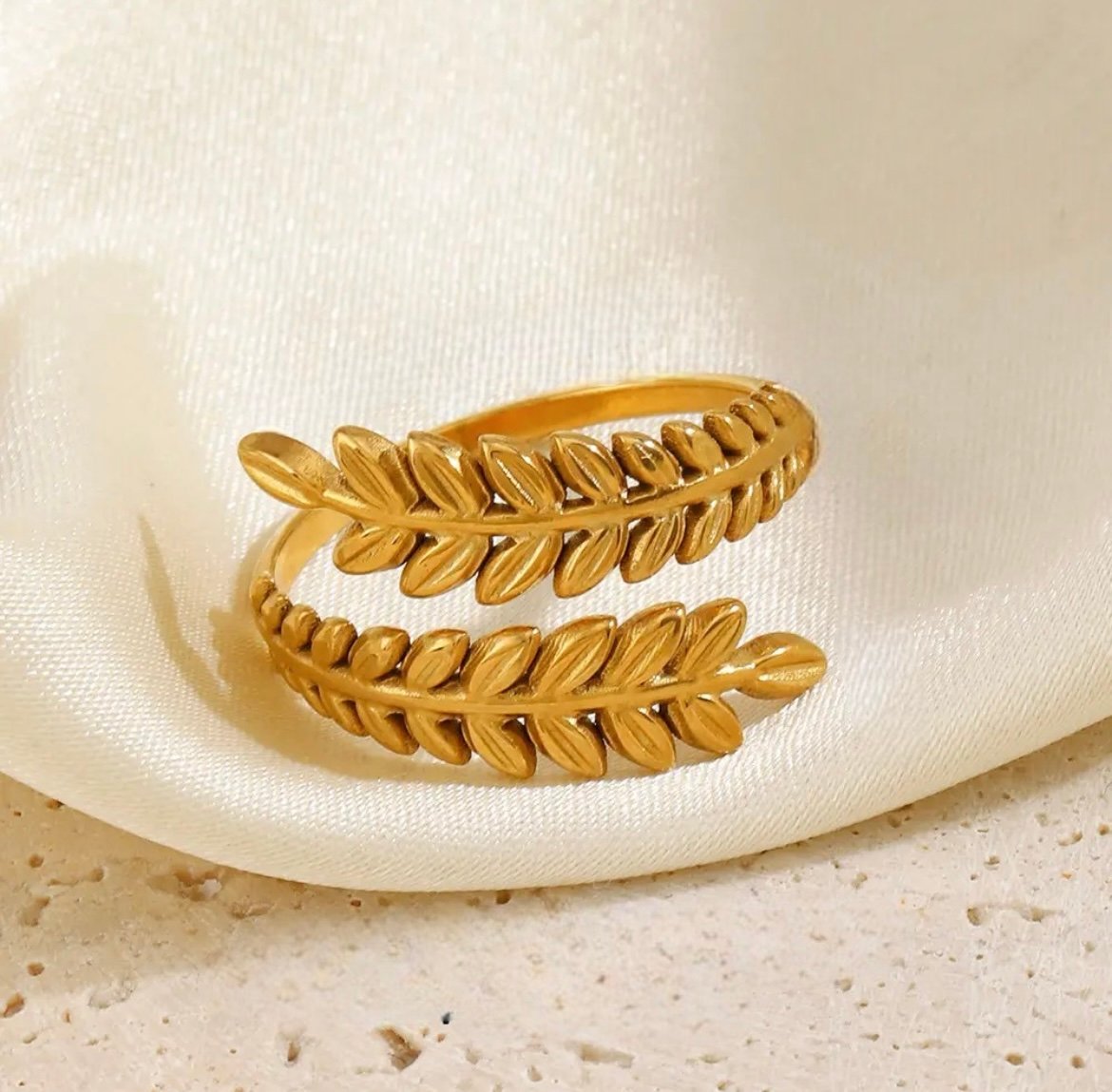 Elegant Olive Leaf Shaped Design Golden Adjustable Ring For Dailywear & Partywear