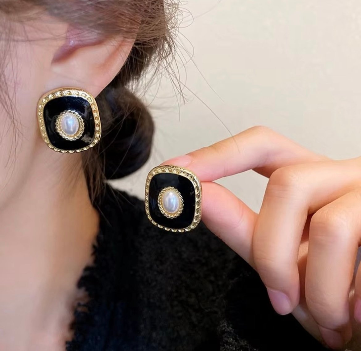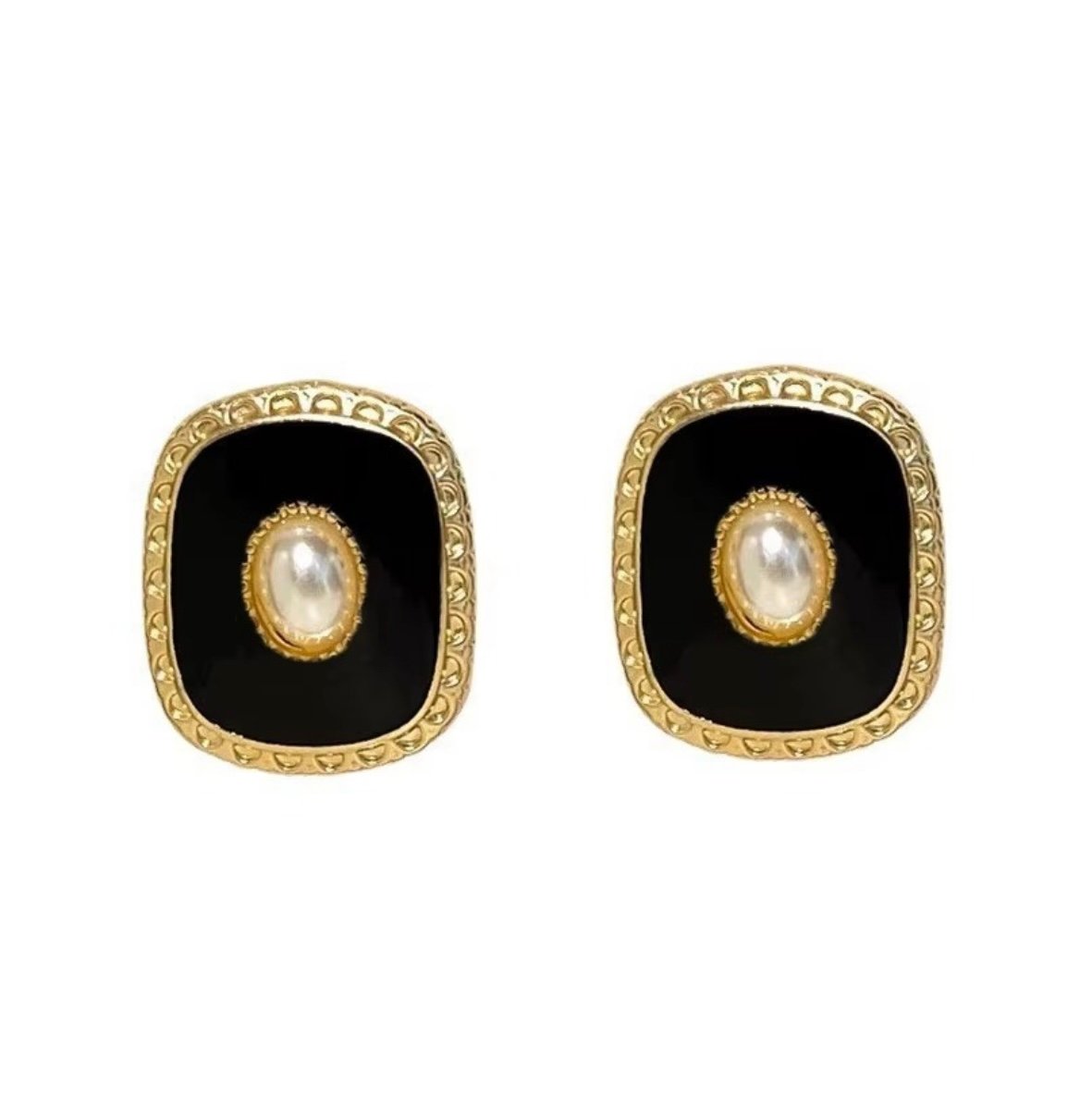 Korean Style Black & White Rectangle Pearl Stud Earrigns_KRNE011