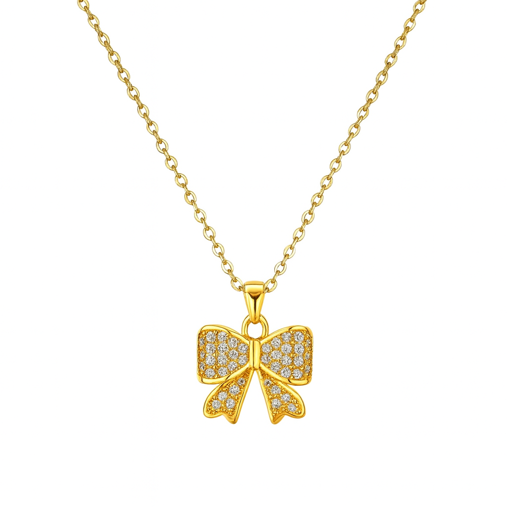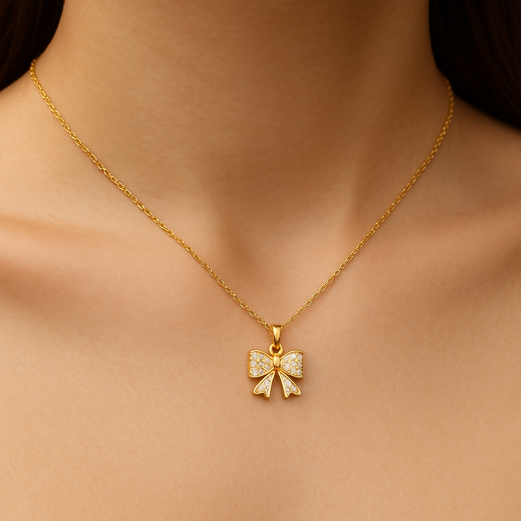 Western Style Gold Plated Chain With Bow Shape Pendant For Dailywear/Partywear_C025